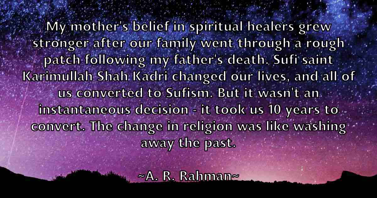 My mother's belief in spiritual healers grew stronger after our family went through a rough patch following my father's death. Sufi saint Karimullah Shah Kadri changed our lives, and all of us converted to Sufism. But it wasn't an instantaneous decision - it took us 10 years to convert. The change in religion was like washing away the past.