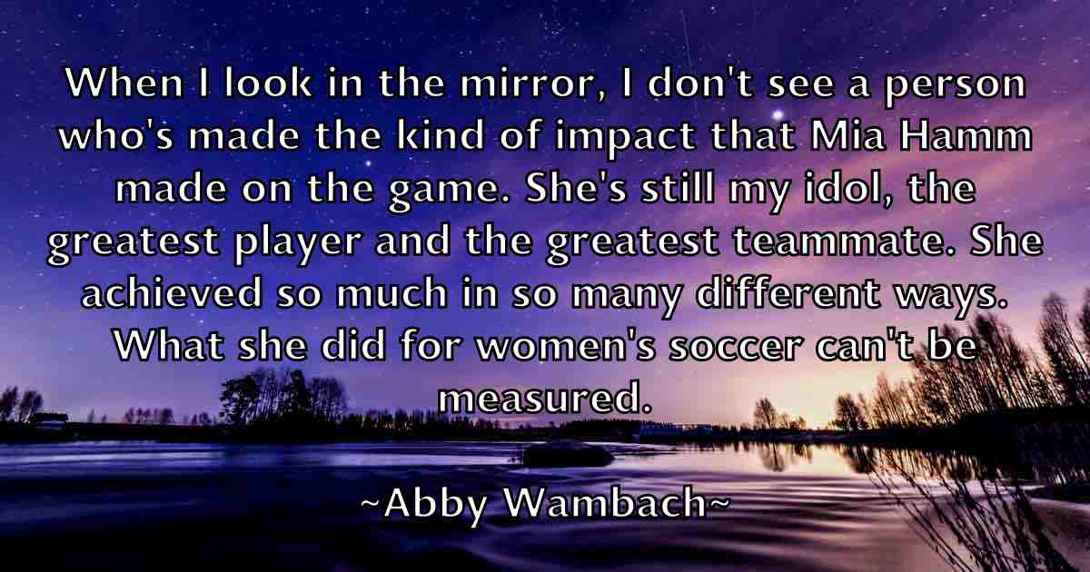When I look in the mirror, I don't see a person who's made the kind of impact that Mia Hamm made on the game. She's still my idol, the greatest player and the greatest teammate. She achieved so much in so many different ways. What she did for women's soccer can't be measured.