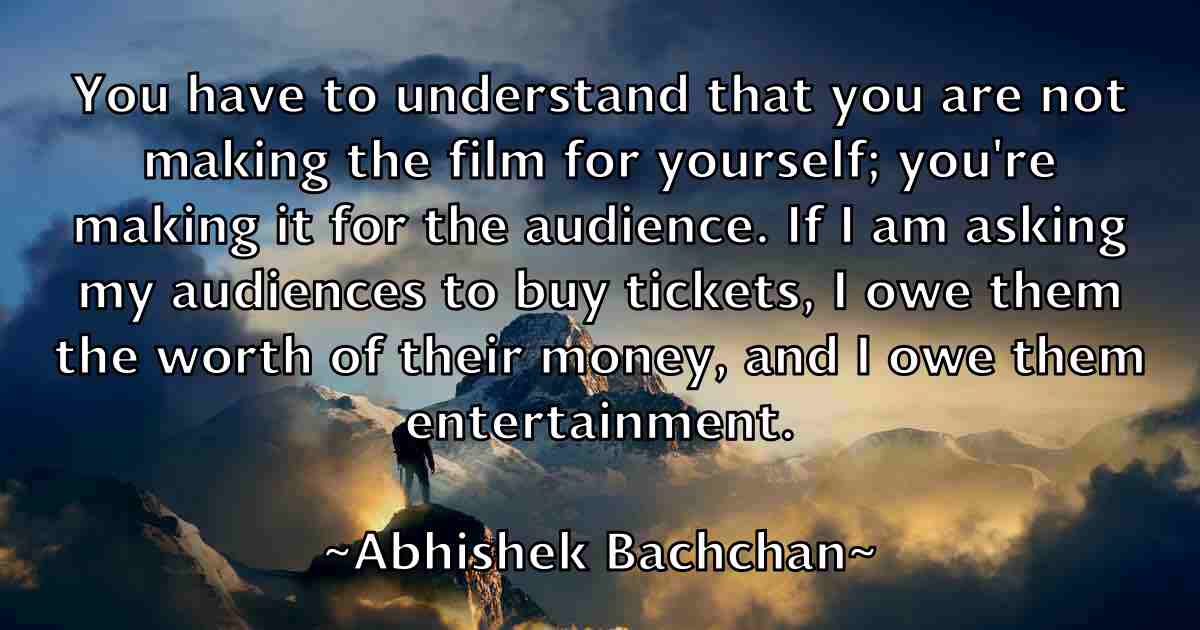 You have to understand that you are not making the film for yourself; you're making it for the audience. If I am asking my audiences to buy tickets, I owe them the worth of their money, and I owe them entertainment.