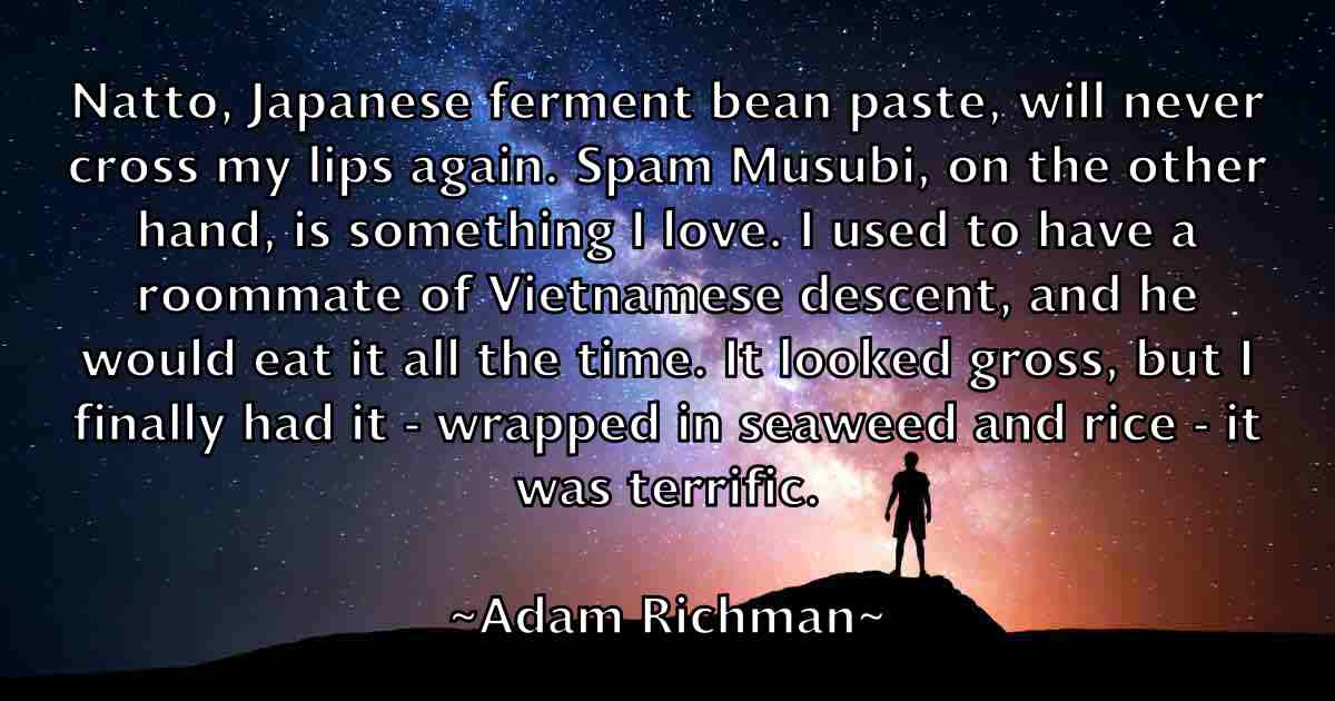 Natto, Japanese ferment bean paste, will never cross my lips again. Spam Musubi, on the other hand, is something I love. I used to have a roommate of Vietnamese descent, and he would eat it all the time. It looked gross, but I finally had it - wrapped in seaweed and rice - it was terrific.