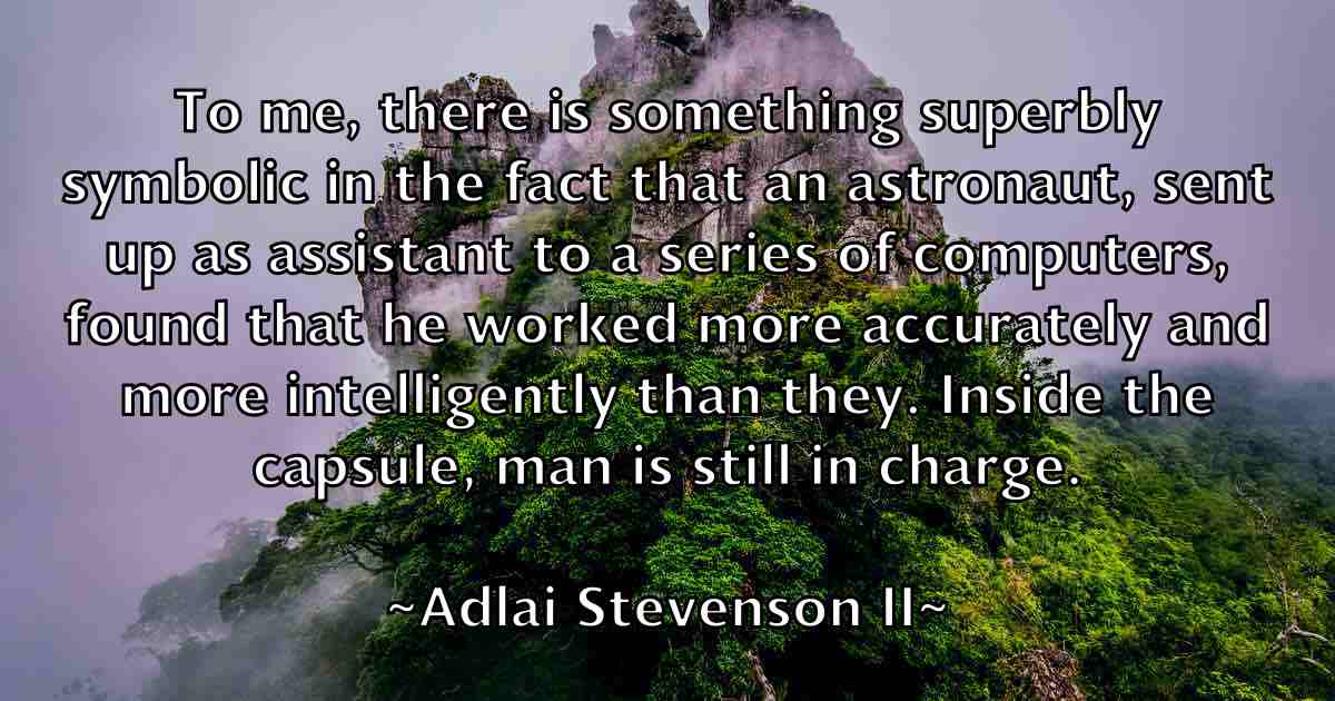 To me, there is something superbly symbolic in the fact that an astronaut, sent up as assistant to a series of computers, found that he worked more accurately and more intelligently than they. Inside the capsule, man is still in charge.