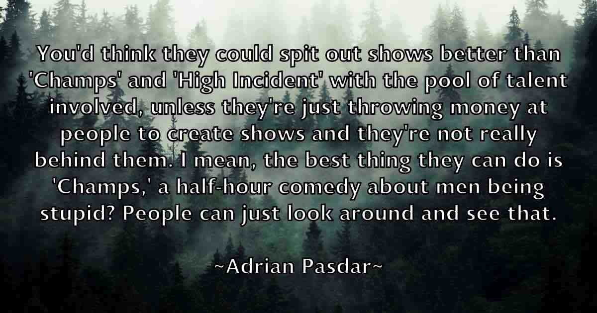 You'd think they could spit out shows better than 'Champs' and 'High Incident' with the pool of talent involved, unless they're just throwing money at people to create shows and they're not really behind them. I mean, the best thing they can do is 'Champs,' a half-hour comedy about men being stupid? People can just look around and see that.
