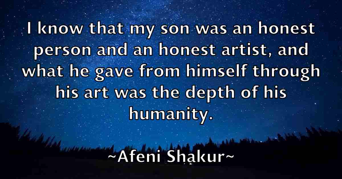 I know that my son was an honest person and an honest artist, and what he gave from himself through his art was the depth of his humanity.