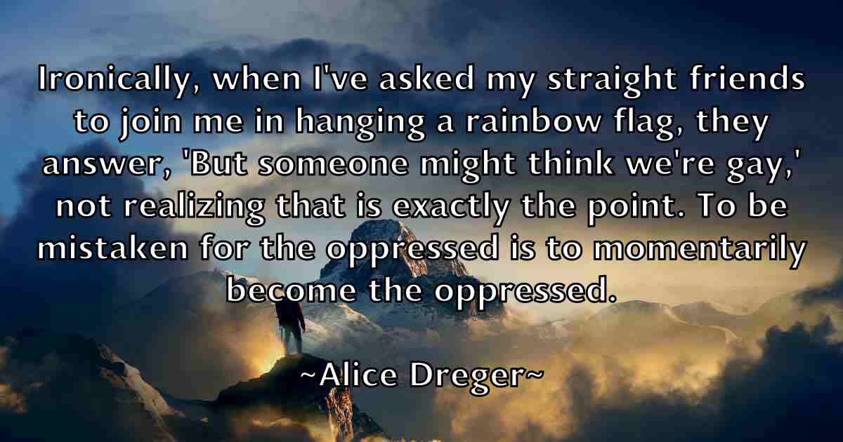 Ironically, when I've asked my straight friends to join me in hanging a rainbow flag, they answer, 'But someone might think we're gay,' not realizing that is exactly the point. To be mistaken for the oppressed is to momentarily become the oppressed.