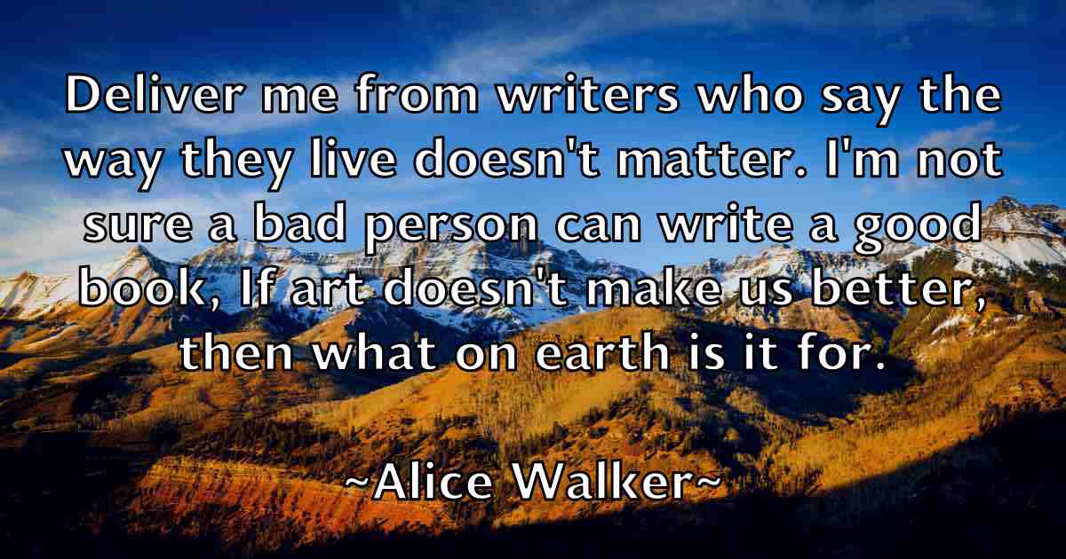 Deliver me from writers who say the way they live doesn't matter. I'm not sure a bad person can write a good book, If art doesn't make us better, then what on earth is it for.