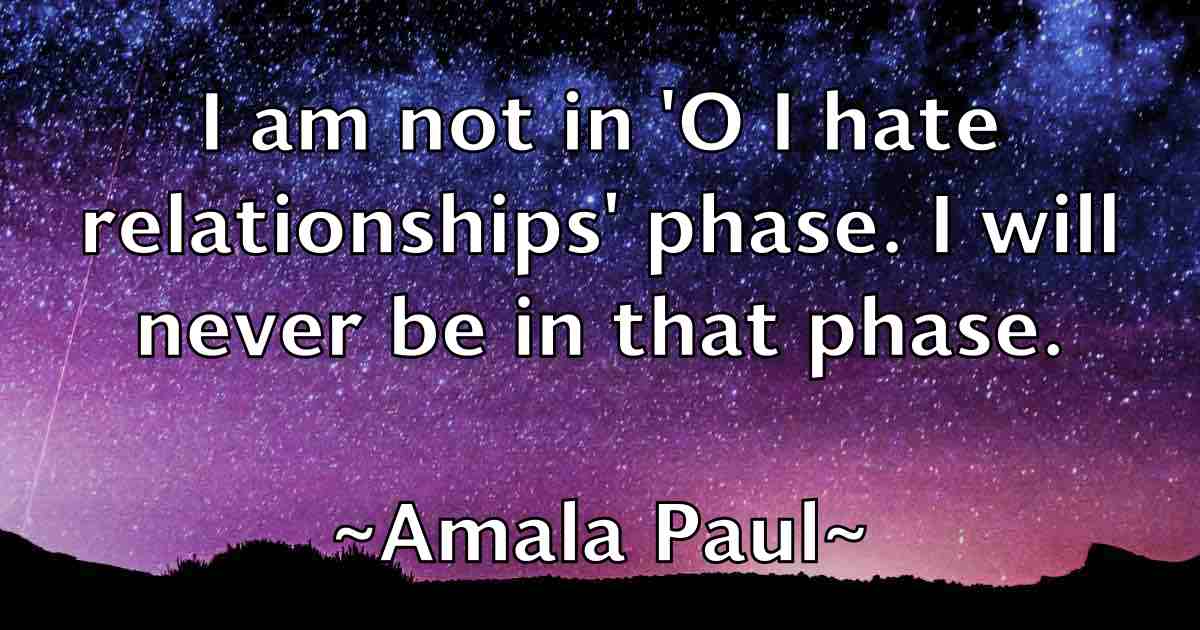I am not in 'O I hate relationships' phase. I will never be in that phase.