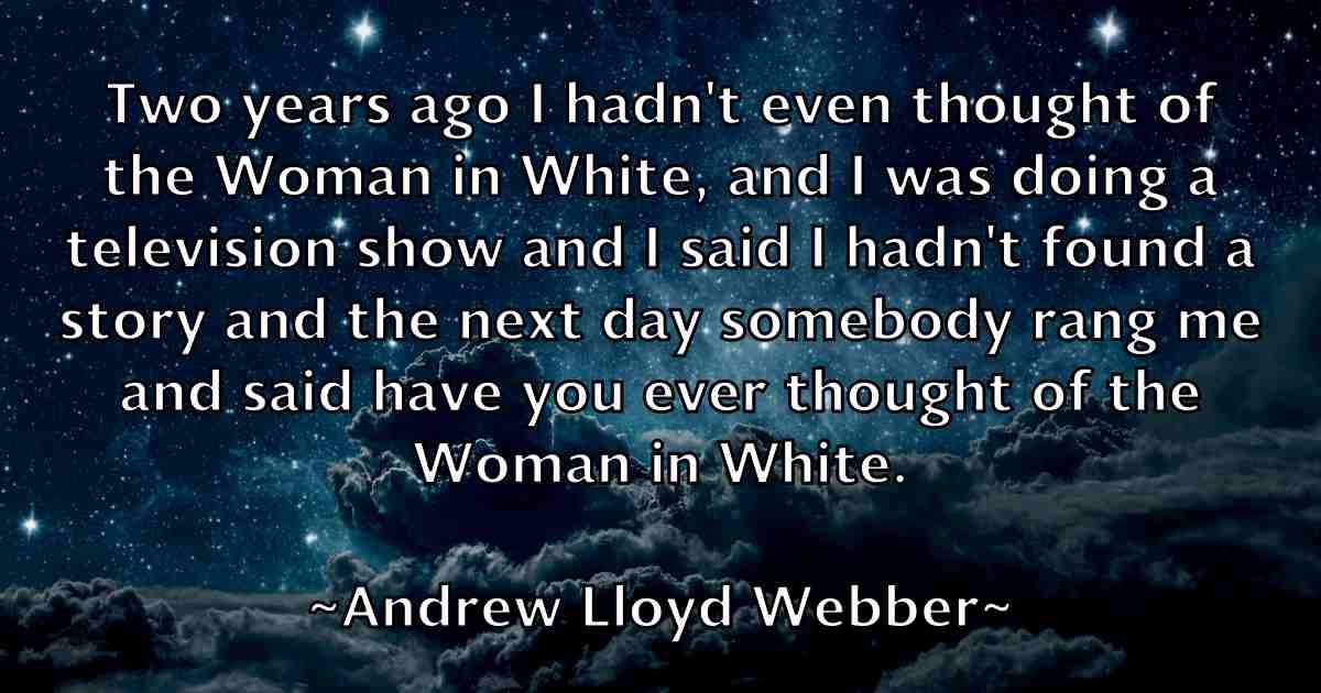 Two years ago I hadn't even thought of the Woman in White, and I was doing a television show and I said I hadn't found a story and the next day somebody rang me and said have you ever thought of the Woman in White.