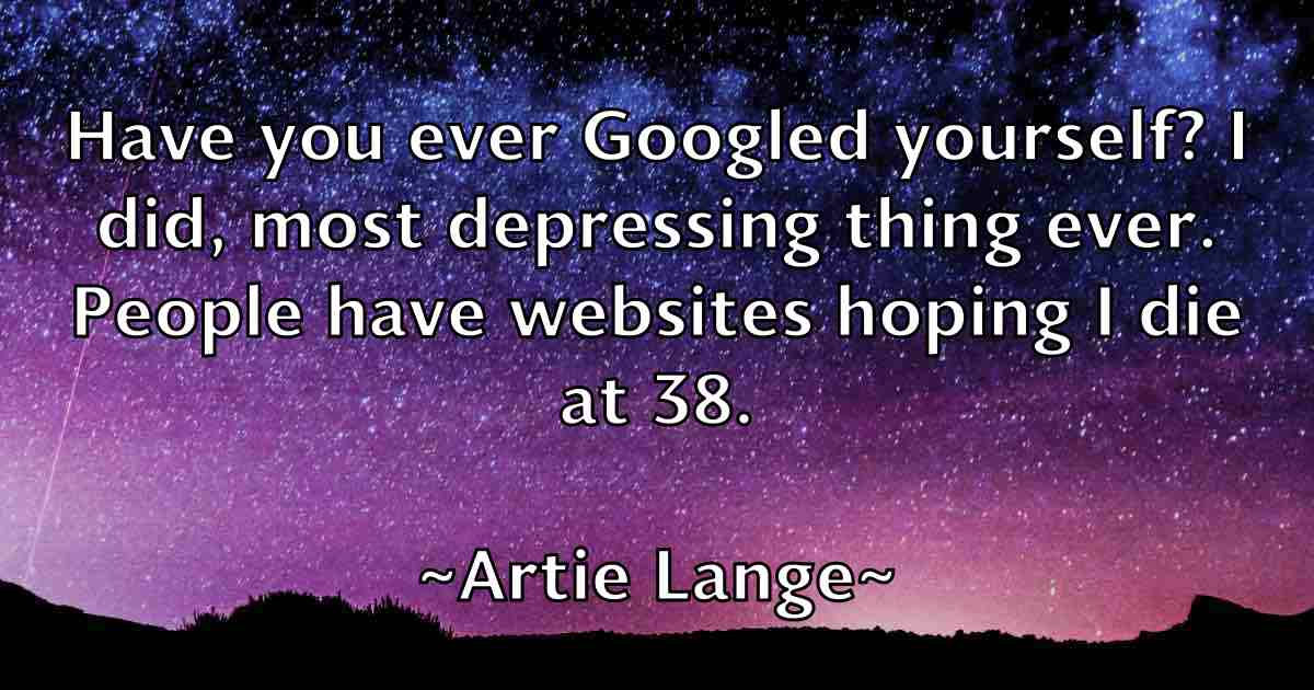 Have you ever Googled yourself? I did, most depressing thing ever. People have websites hoping I die at 38.