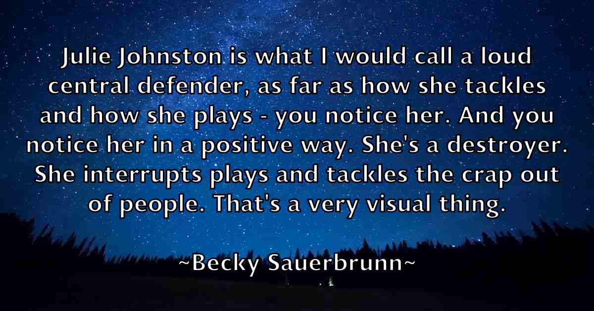 Julie Johnston is what I would call a loud central defender, as far as how she tackles and how she plays - you notice her. And you notice her in a positive way. She's a destroyer. She interrupts plays and tackles the crap out of people. That's a very visual thing.