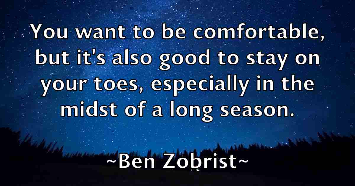 You want to be comfortable, but it's also good to stay on your toes, especially in the midst of a long season.
