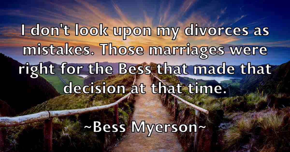 I don't look upon my divorces as mistakes. Those marriages were right for the Bess that made that decision at that time.