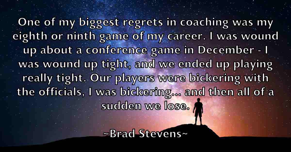 One of my biggest regrets in coaching was my eighth or ninth game of my career. I was wound up about a conference game in December - I was wound up tight, and we ended up playing really tight. Our players were bickering with the officials, I was bickering... and then all of a sudden we lose.