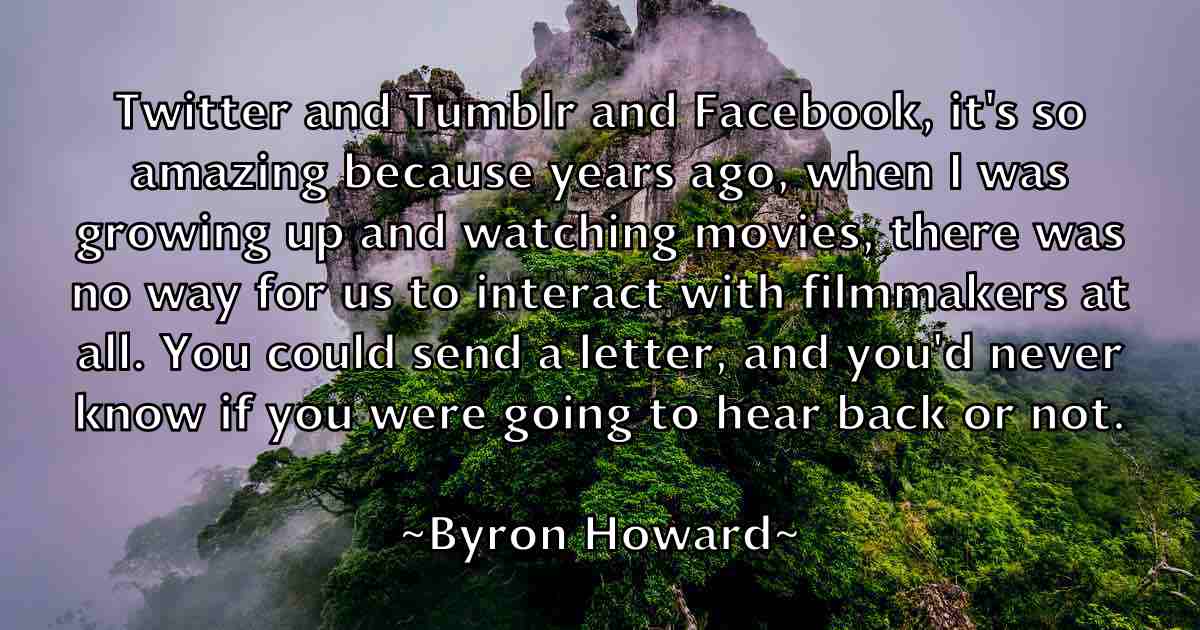 Twitter and Tumblr and Facebook, it's so amazing because years ago, when I was growing up and watching movies, there was no way for us to interact with filmmakers at all. You could send a letter, and you'd never know if you were going to hear back or not.