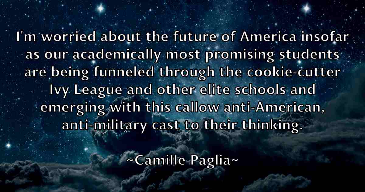 I'm worried about the future of America insofar as our academically most promising students are being funneled through the cookie-cutter Ivy League and other elite schools and emerging with this callow anti-American, anti-military cast to their thinking.