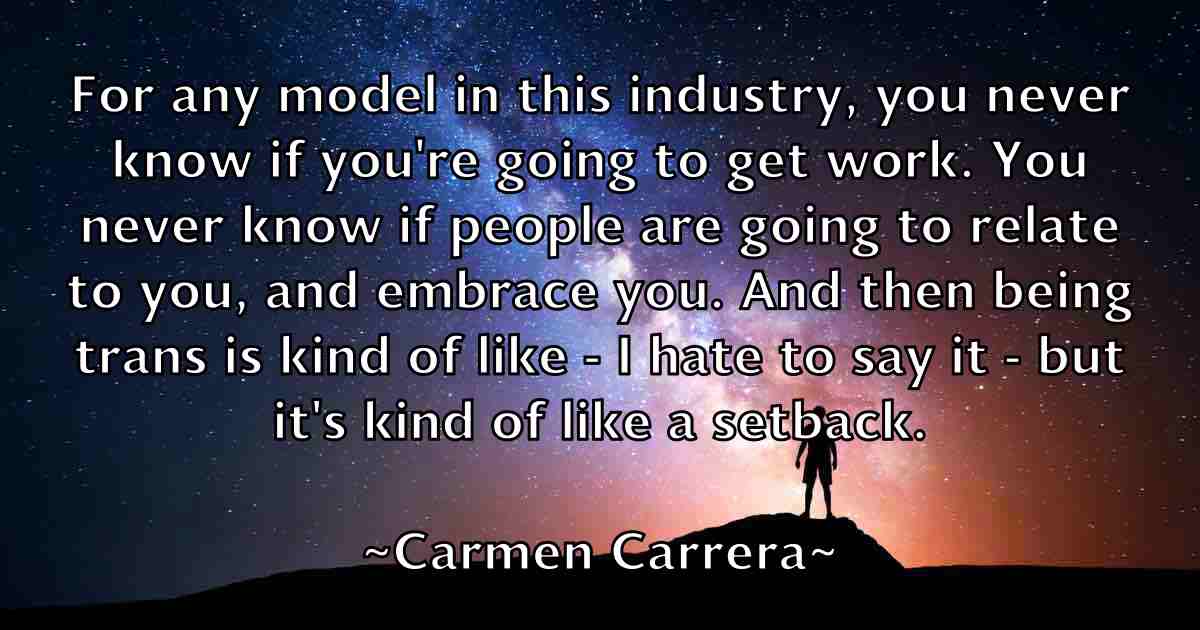 For any model in this industry, you never know if you're going to get work. You never know if people are going to relate to you, and embrace you. And then being trans is kind of like - I hate to say it - but it's kind of like a setback.