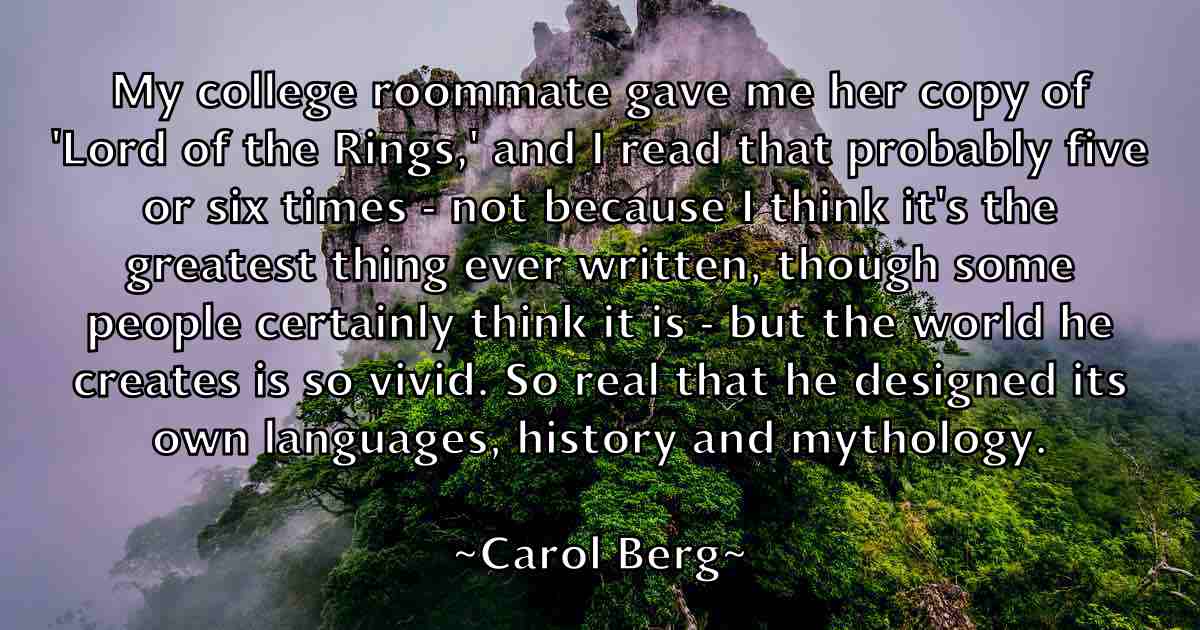 My college roommate gave me her copy of 'Lord of the Rings,' and I read that probably five or six times - not because I think it's the greatest thing ever written, though some people certainly think it is - but the world he creates is so vivid. So real that he designed its own languages, history and mythology.