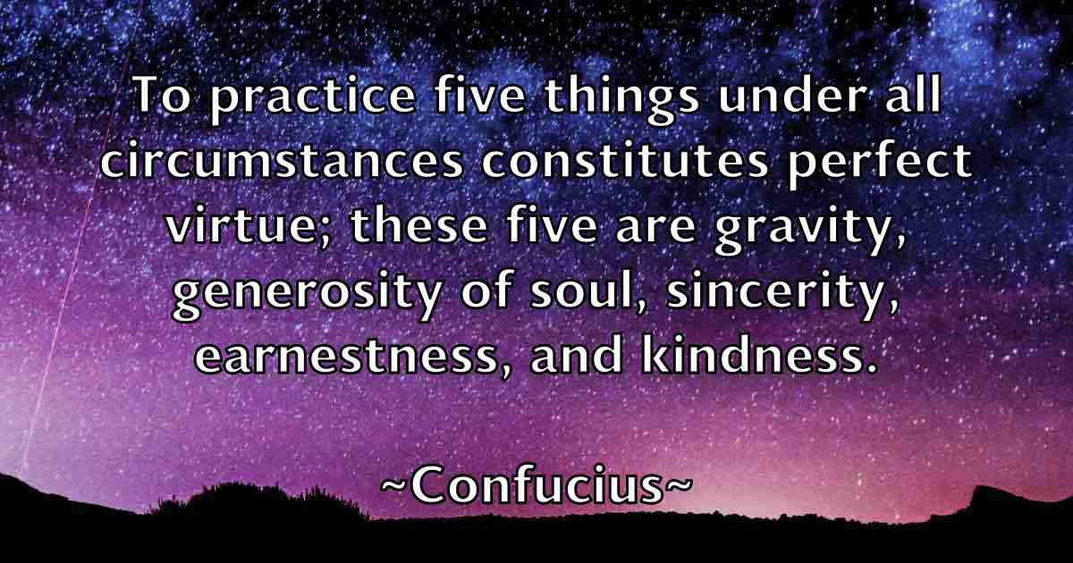 To practice five things under all circumstances constitutes perfect virtue; these five are gravity, generosity of soul, sincerity, earnestness, and kindness.