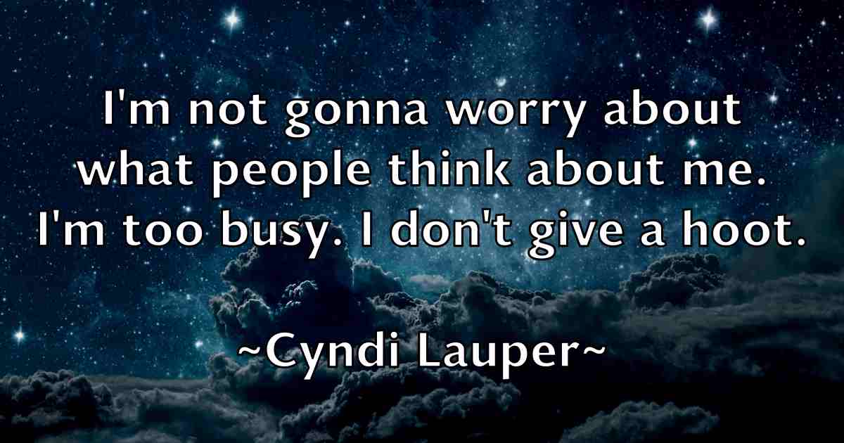 I'm not gonna worry about what people think about me. I'm too busy. I don't give a hoot.