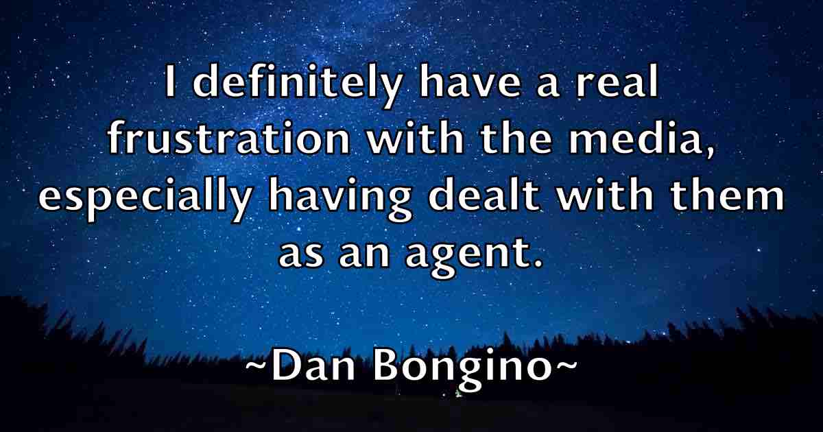 I definitely have a real frustration with the media, especially having dealt with them as an agent.