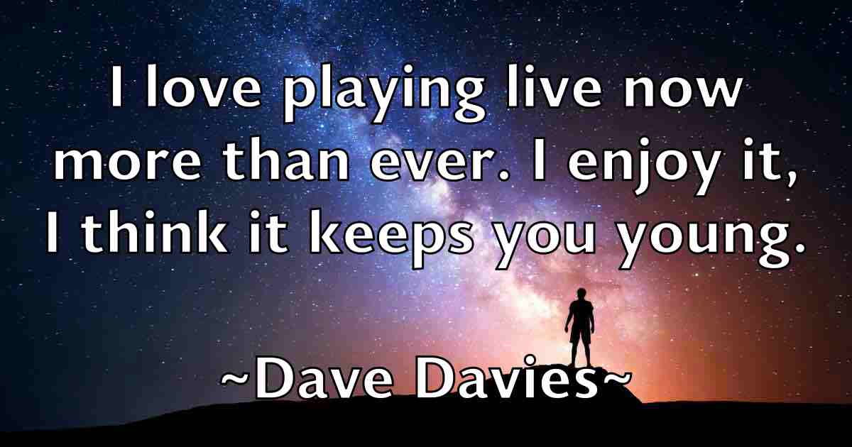 I love playing live now more than ever. I enjoy it, I think it keeps you young.