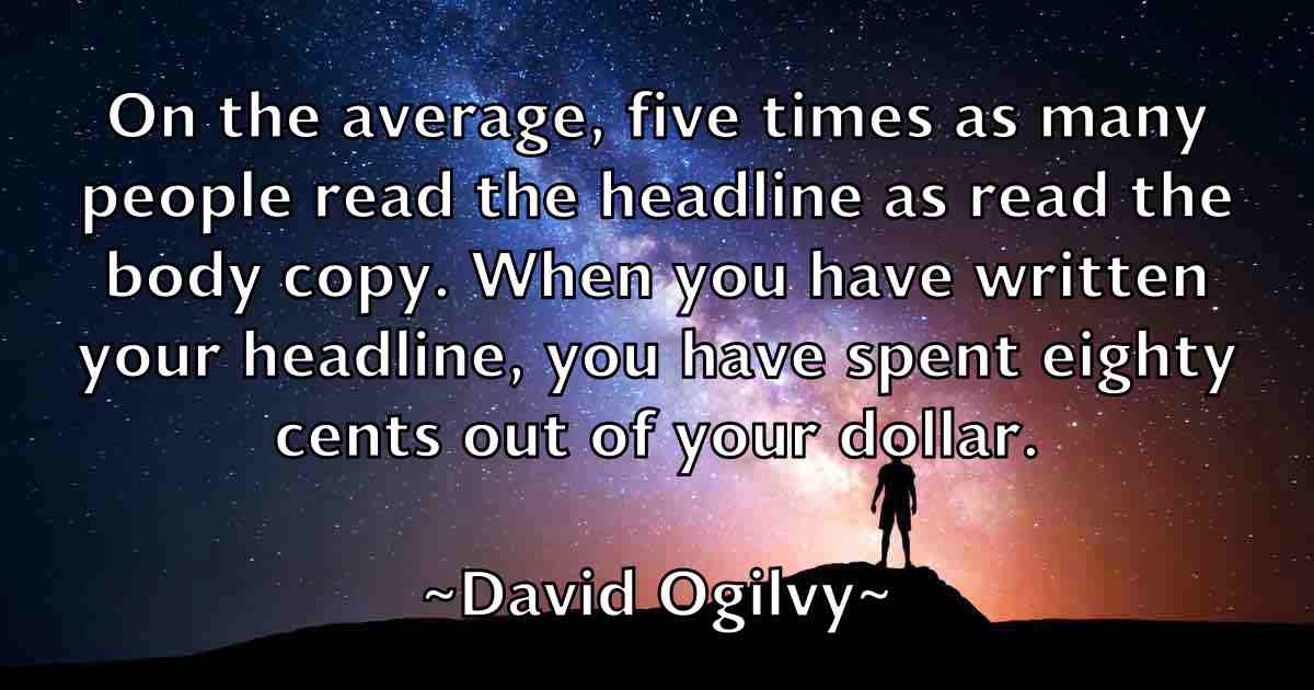 On the average, five times as many people read the headline as read the body copy. When you have written your headline, you have spent eighty cents out of your dollar.