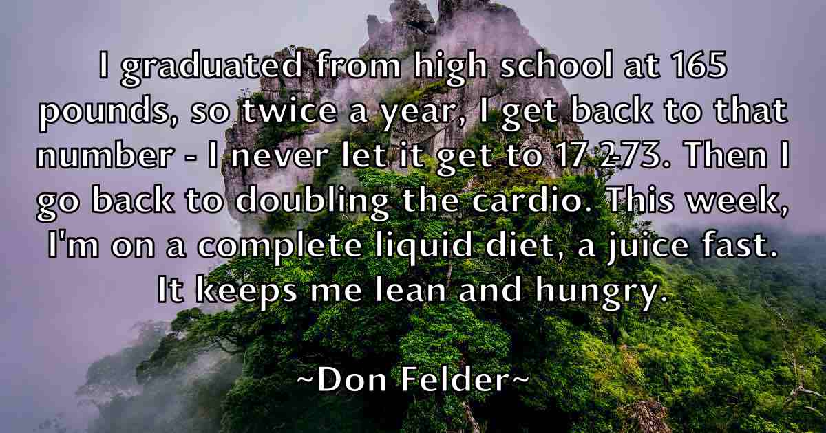 I graduated from high school at 165 pounds, so twice a year, I get back to that number - I never let it get to 172-73. Then I go back to doubling the cardio. This week, I'm on a complete liquid diet, a juice fast. It keeps me lean and hungry.