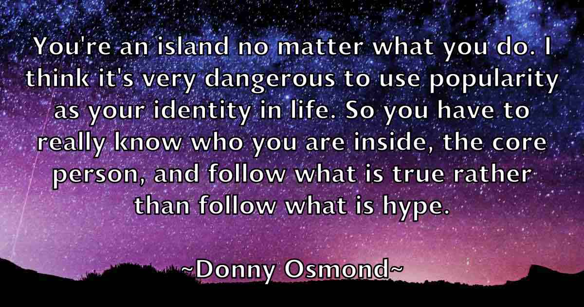 You're an island no matter what you do. I think it's very dangerous to use popularity as your identity in life. So you have to really know who you are inside, the core person, and follow what is true rather than follow what is hype.
