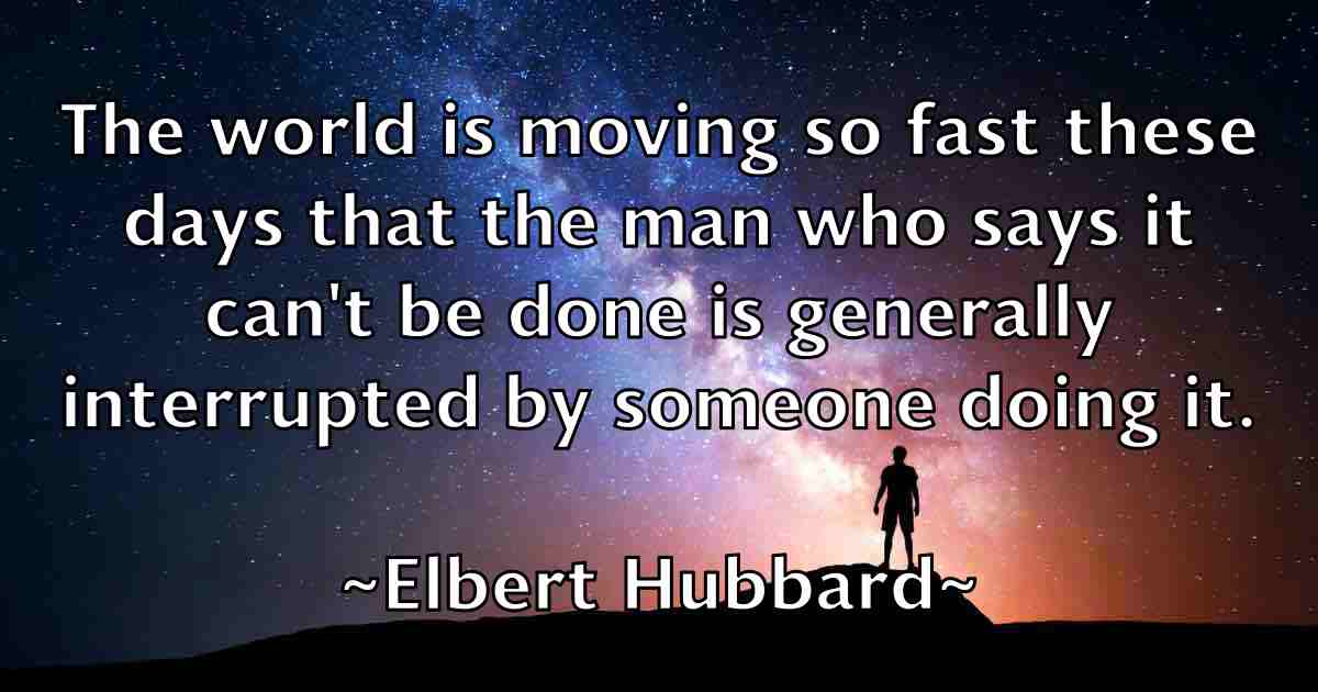 The world is moving so fast these days that the man who says it can't be done is generally interrupted by someone doing it.