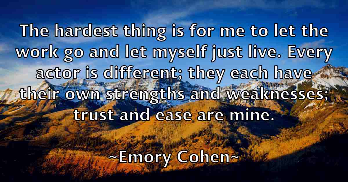 The hardest thing is for me to let the work go and let myself just live. Every actor is different; they each have their own strengths and weaknesses; trust and ease are mine.