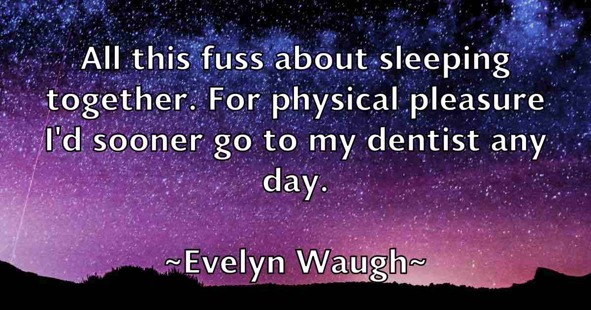All this fuss about sleeping together. For physical pleasure I'd sooner go to my dentist any day.
