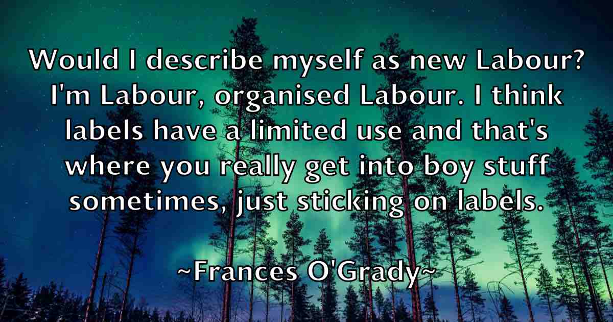 Would I describe myself as new Labour? I'm Labour, organised Labour. I think labels have a limited use and that's where you really get into boy stuff sometimes, just sticking on labels.