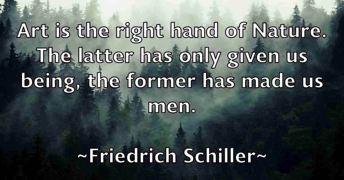 Art is the right hand of Nature. The latter has only given us being, the former has made us men.
