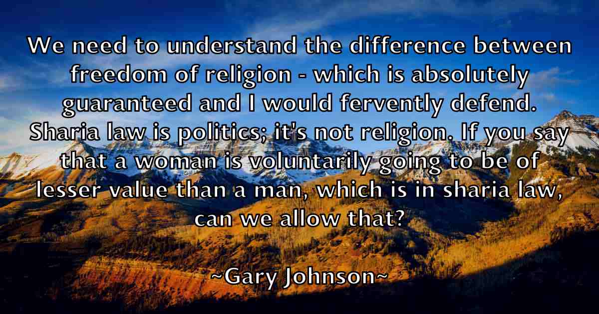 We need to understand the difference between freedom of religion - which is absolutely guaranteed and I would fervently defend. Sharia law is politics; it's not religion. If you say that a woman is voluntarily going to be of lesser value than a man, which is in sharia law, can we allow that?