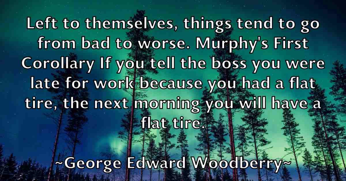 Left to themselves, things tend to go from bad to worse. Murphy's First Corollary If you tell the boss you were late for work because you had a flat tire, the next morning you will have a flat tire.
