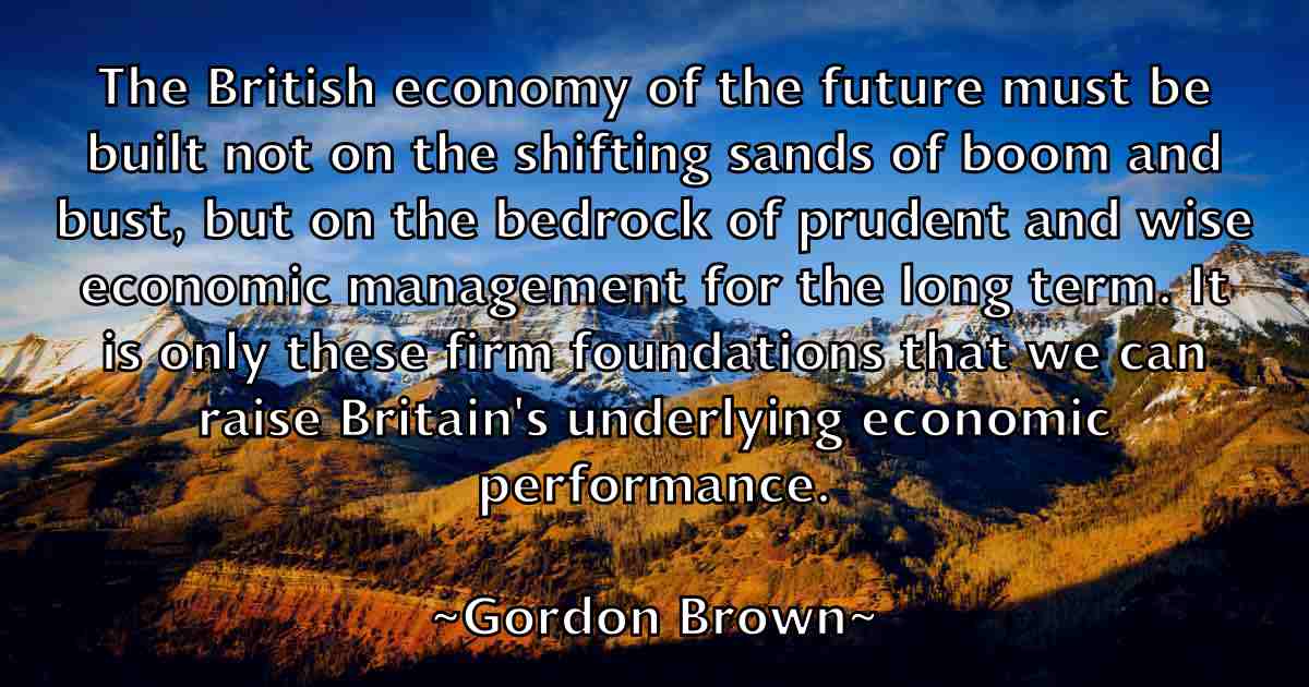 The British economy of the future must be built not on the shifting sands of boom and bust, but on the bedrock of prudent and wise economic management for the long term. It is only these firm foundations that we can raise Britain's underlying economic performance.