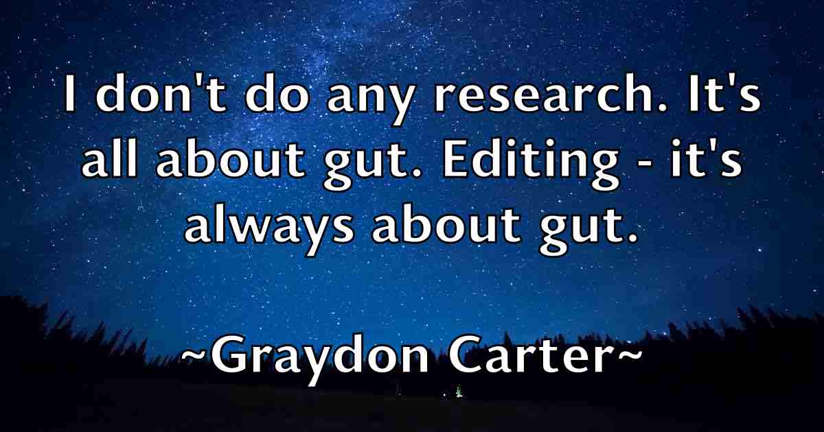 I don't do any research. It's all about gut. Editing - it's always about gut.
