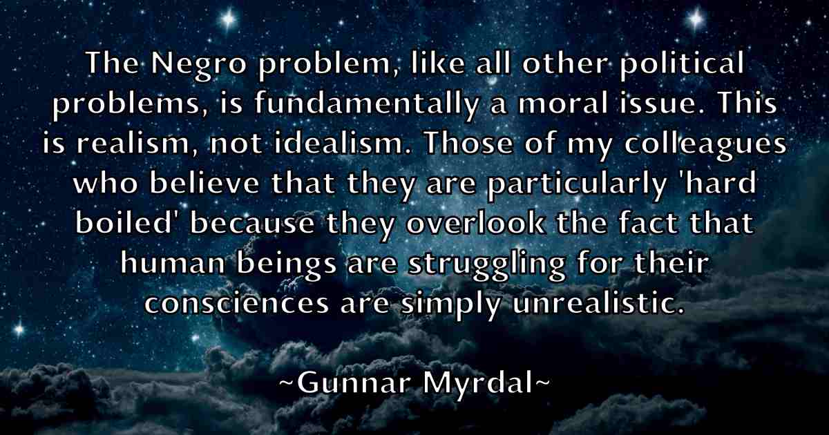 The Negro problem, like all other political problems, is fundamentally a moral issue. This is realism, not idealism. Those of my colleagues who believe that they are particularly 'hard boiled' because they overlook the fact that human beings are struggling for their consciences are simply unrealistic.