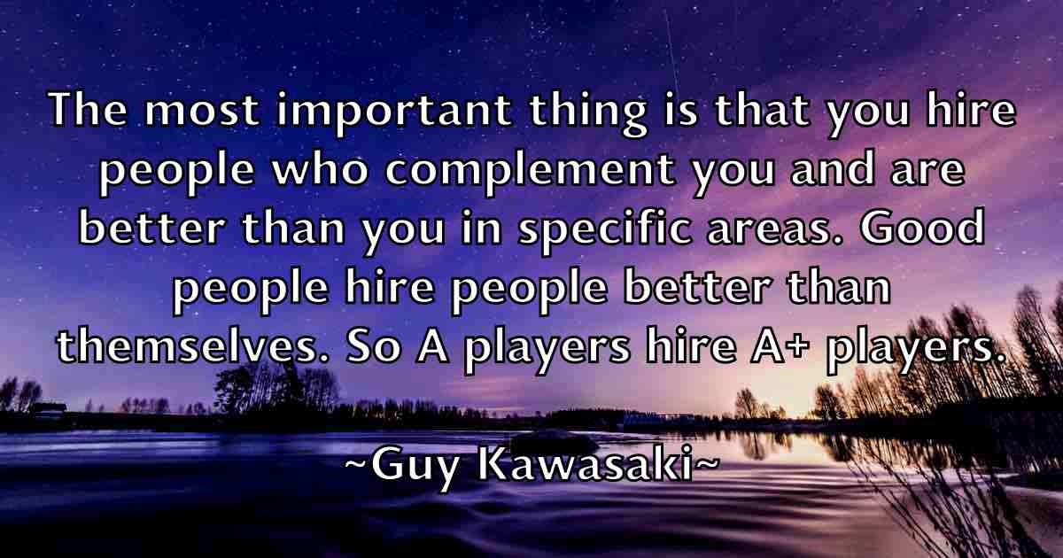 The most important thing is that you hire people who complement you and are better than you in specific areas. Good people hire people better than themselves. So A players hire A+ players.