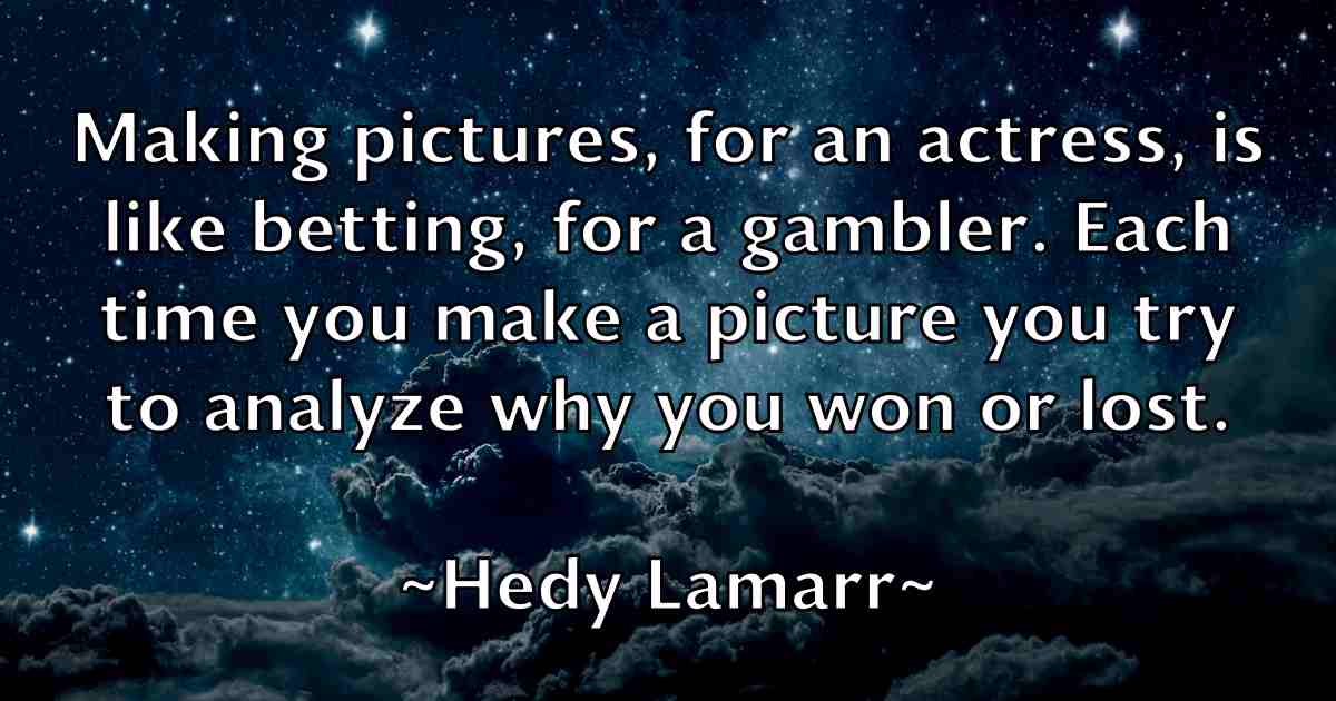 Making pictures, for an actress, is like betting, for a gambler. Each time you make a picture you try to analyze why you won or lost.