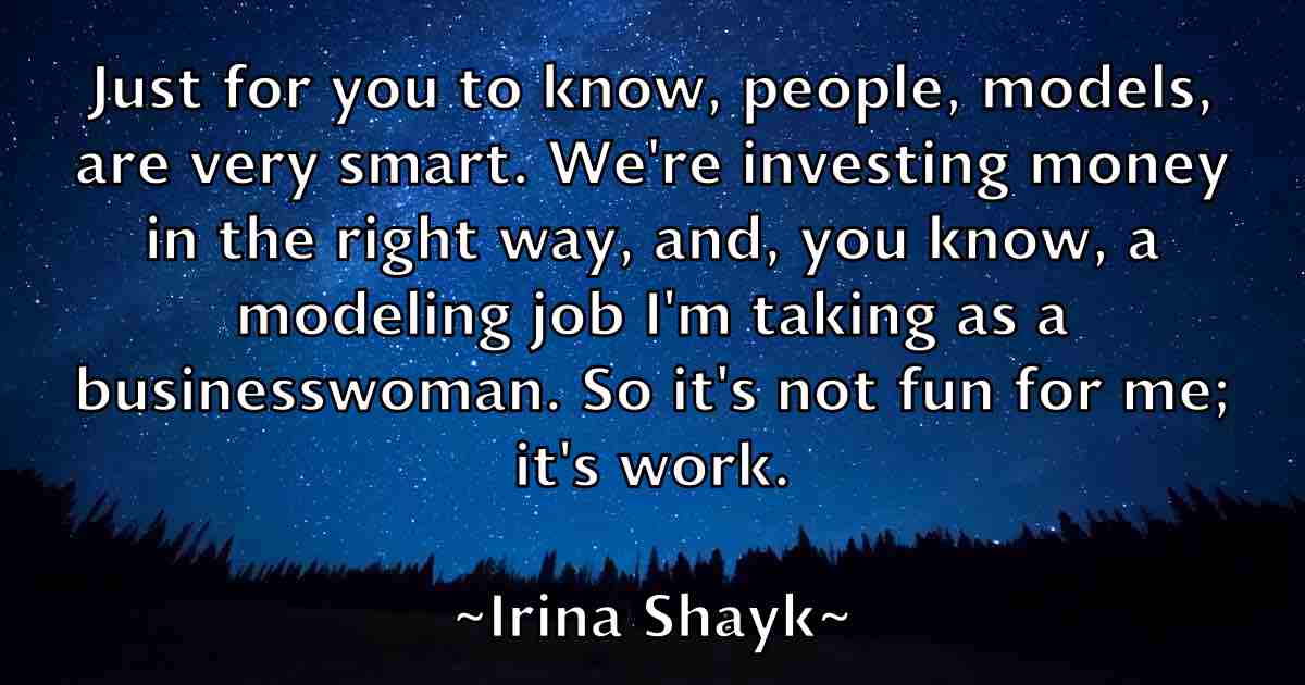 Just for you to know, people, models, are very smart. We're investing money in the right way, and, you know, a modeling job I'm taking as a businesswoman. So it's not fun for me; it's work.