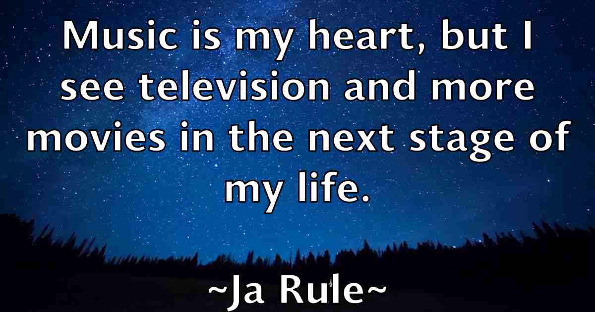 Music is my heart, but I see television and more movies in the next stage of my life.