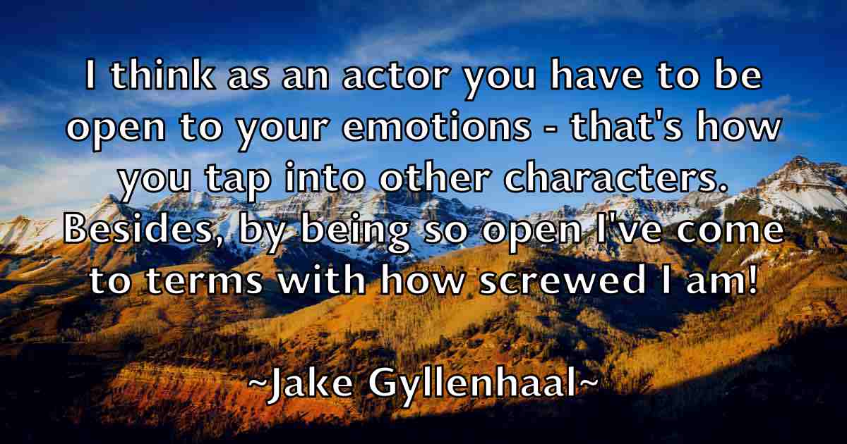 I think as an actor you have to be open to your emotions - that's how you tap into other characters. Besides, by being so open I've come to terms with how screwed I am!