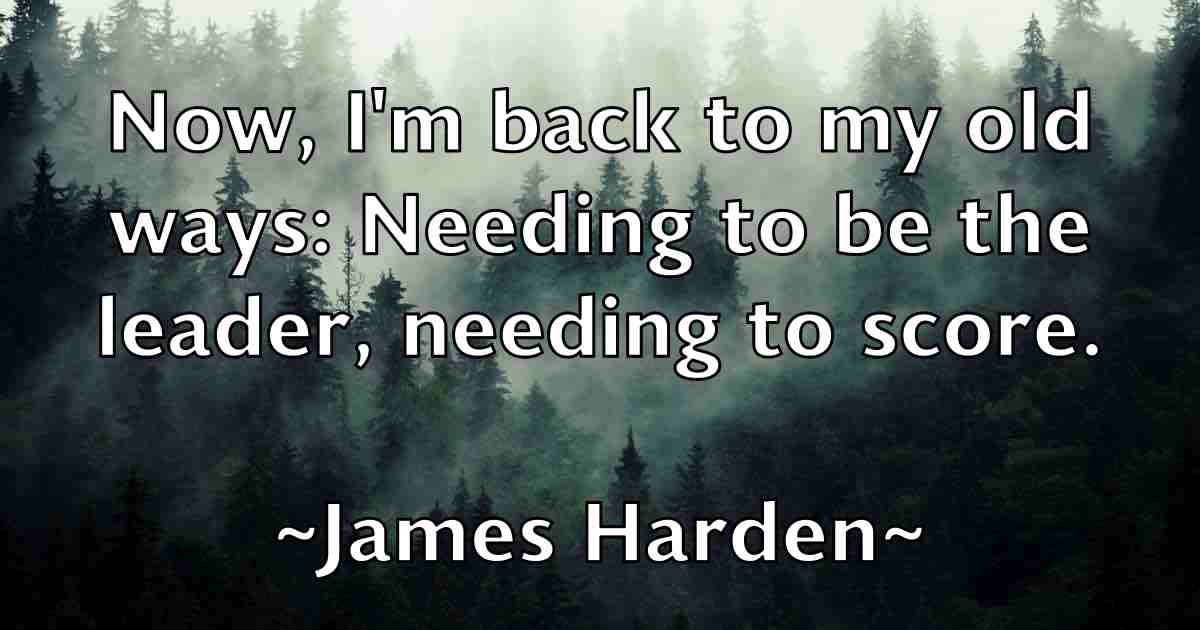 Now, I'm back to my old ways: Needing to be the leader, needing to score.