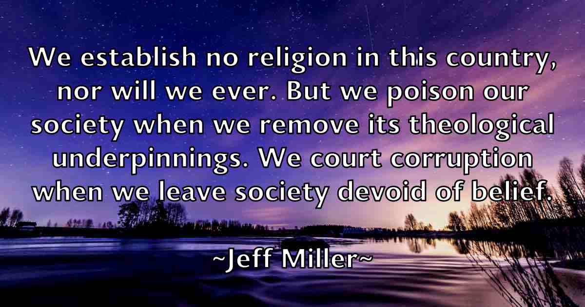 We establish no religion in this country, nor will we ever. But we poison our society when we remove its theological underpinnings. We court corruption when we leave society devoid of belief.