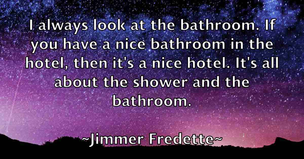 I always look at the bathroom. If you have a nice bathroom in the hotel, then it's a nice hotel. It's all about the shower and the bathroom.