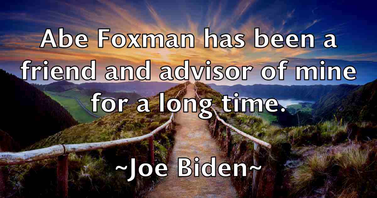 Abe Foxman has been a friend and advisor of mine for a long time.