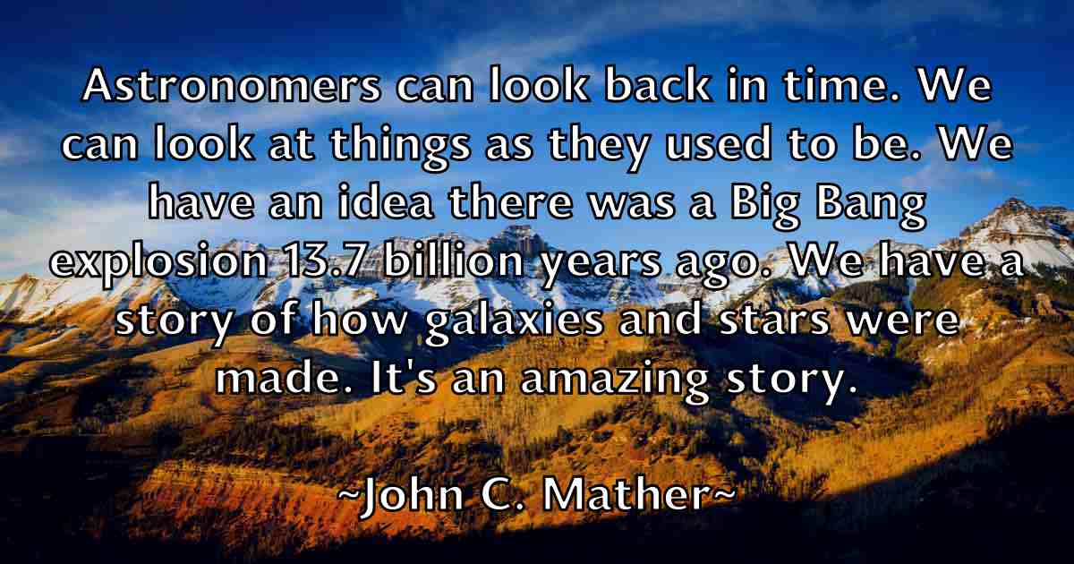 Astronomers can look back in time. We can look at things as they used to be. We have an idea there was a Big Bang explosion 13.7 billion years ago. We have a story of how galaxies and stars were made. It's an amazing story.
