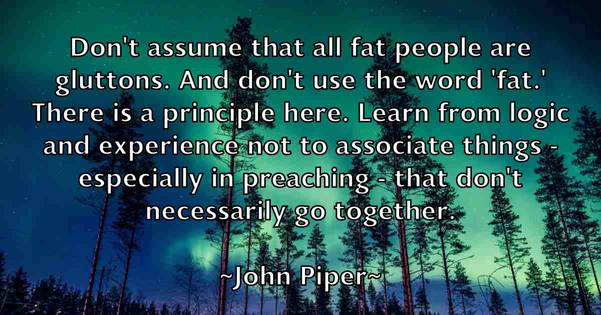 Don't assume that all fat people are gluttons. And don't use the word 'fat.' There is a principle here. Learn from logic and experience not to associate things - especially in preaching - that don't necessarily go together.