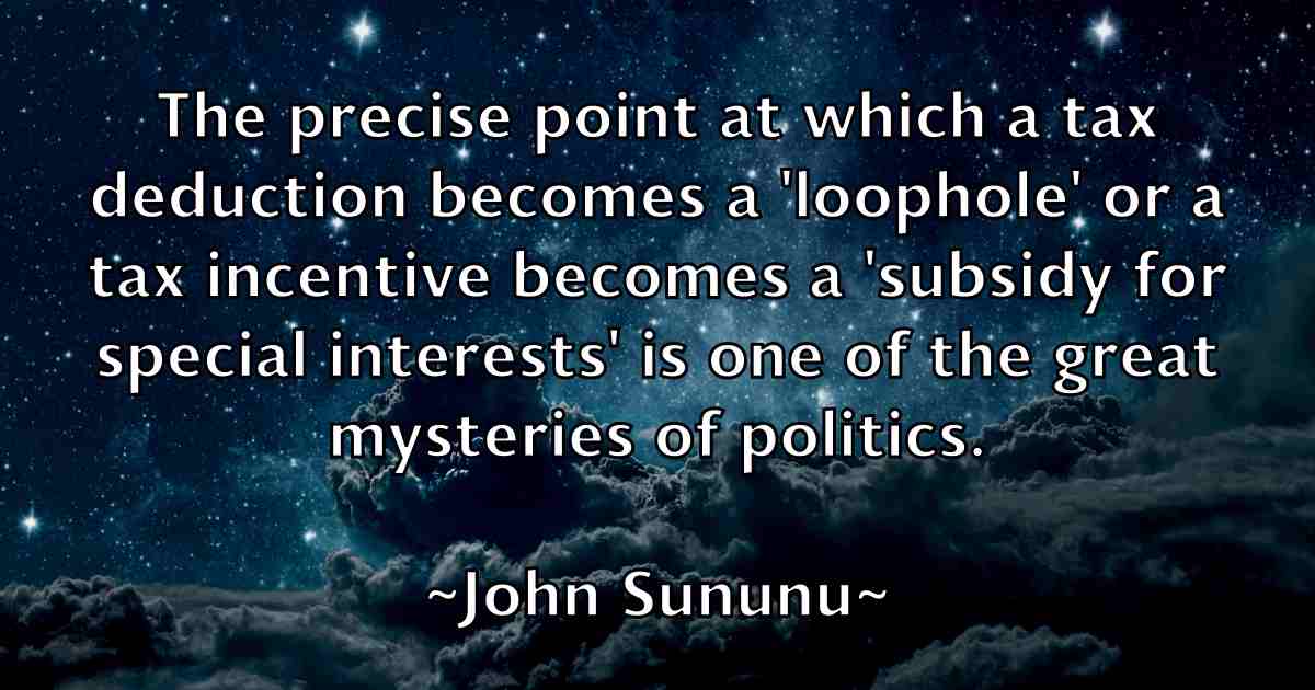 The precise point at which a tax deduction becomes a 'loophole' or a tax incentive becomes a 'subsidy for special interests' is one of the great mysteries of politics.