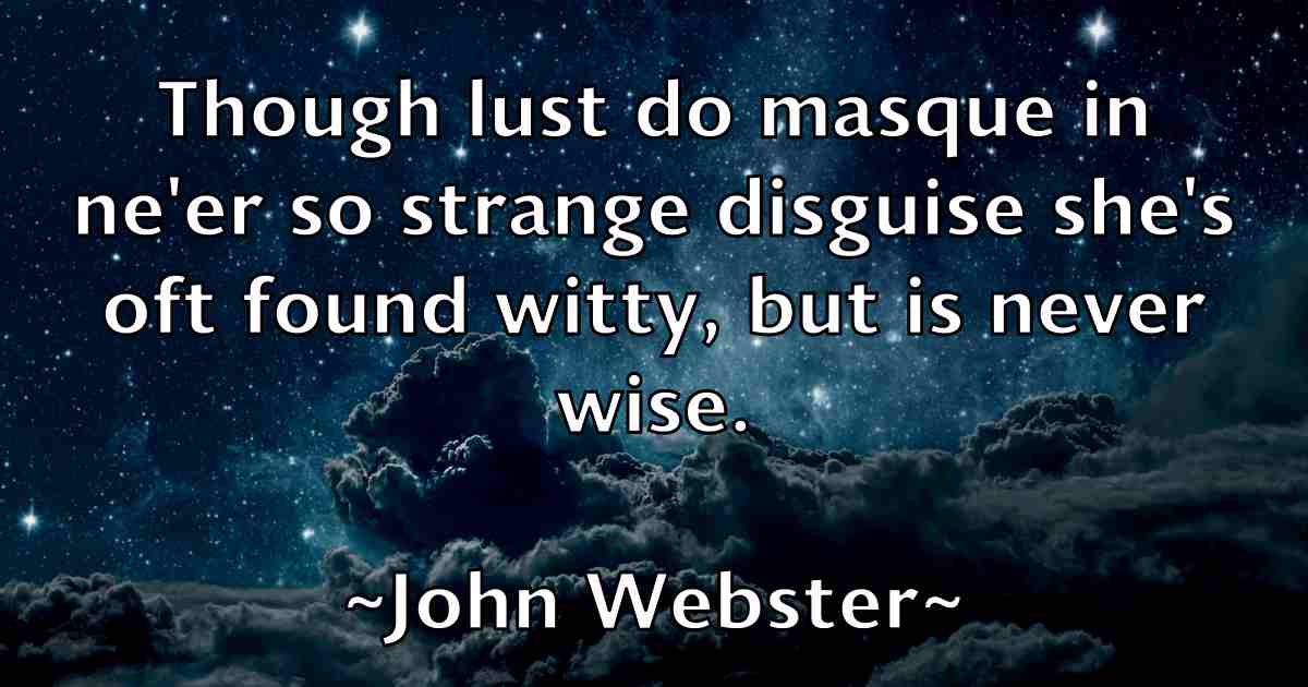 Though lust do masque in ne'er so strange disguise she's oft found witty, but is never wise.